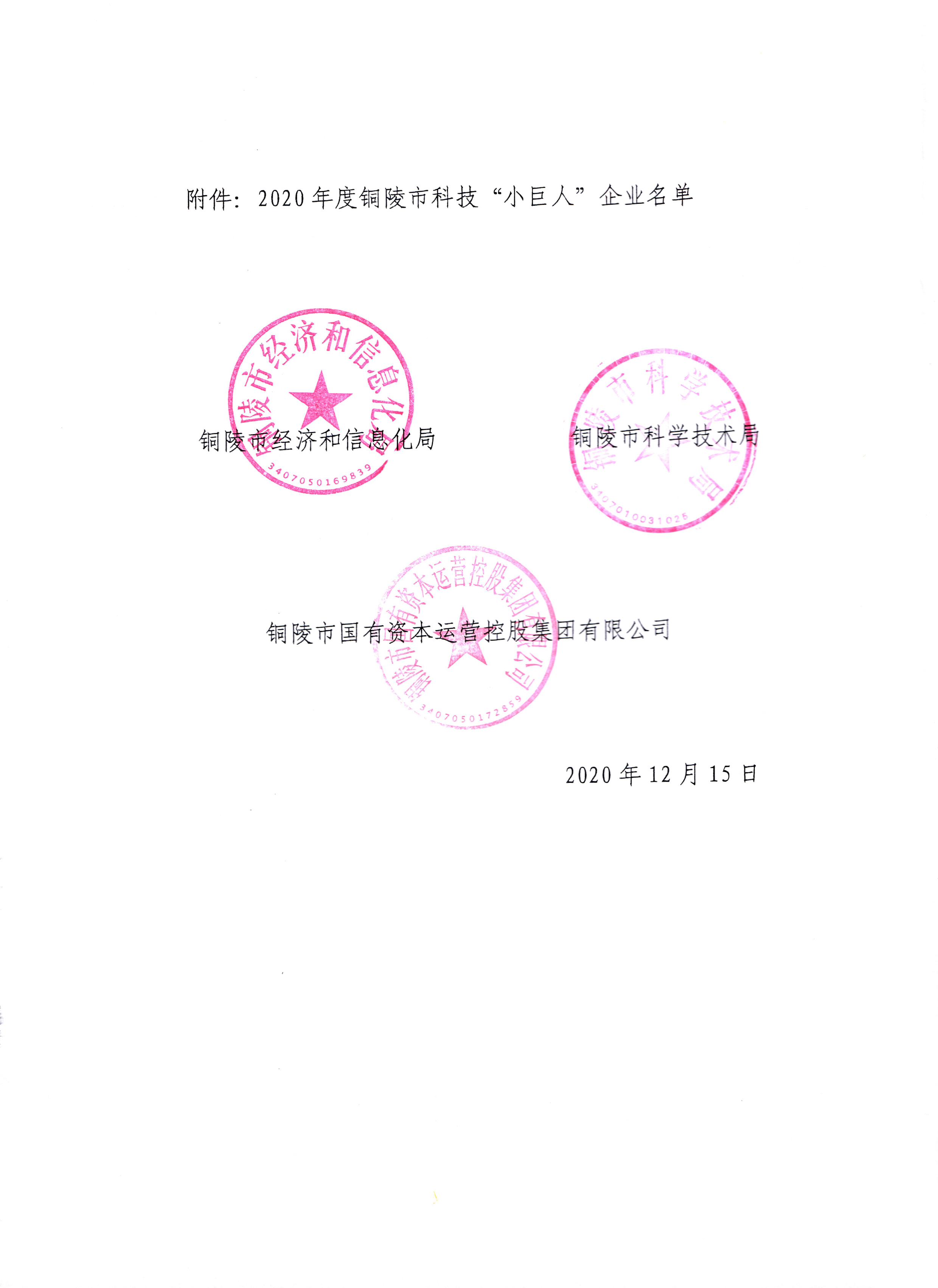 由銅陵市經(jīng)信局、科技局、發(fā)展投資集團(tuán)公司三家單位聯(lián)合開展的2020年度銅陵市“科技小巨人”企業(yè)認(rèn)定工作,銅都流體子公司英諾威閥業(yè)有限公司榜上有名。