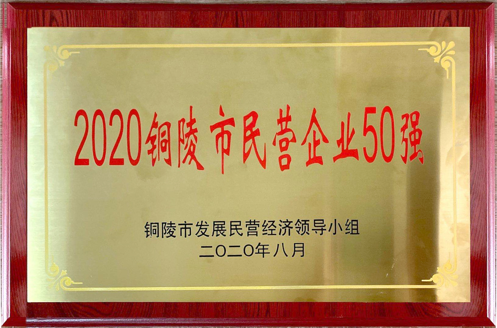 銅陵市發(fā)展民營經(jīng)濟領(lǐng)導小組開展的“2020銅陵市民營企業(yè)50強”評選活動,以企業(yè)2019年度營業(yè)收入為基本標準,銅都流體榮獲2020銅陵市民營企業(yè)50強稱號。