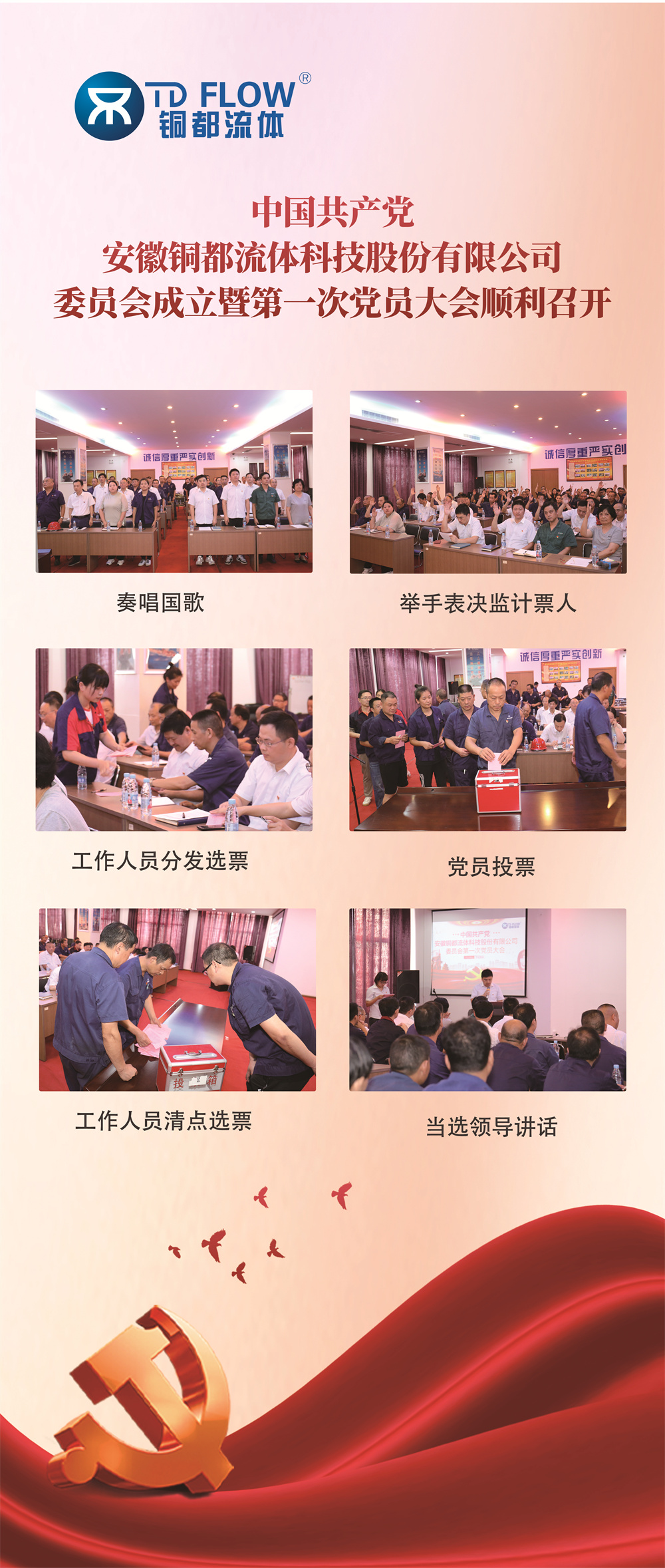 日前,經(jīng)中共銅陵市獅子山高新區(qū)黨工委批準(zhǔn),中國(guó)共產(chǎn)黨安徽銅都流體科技股份有限公司委員會(huì)正式成立。9月28日,銅都流體黨委召開(kāi)了一次黨員大會(huì),選舉產(chǎn)生了銅都流體黨委書(shū)記、副書(shū)記、委員和各支部書(shū)記。